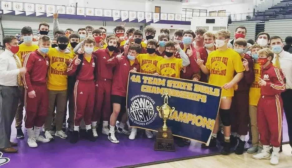 A big “congratulations” to The Mater Dei wrestling team. They were crowned as the 2020 IHSWCA 4A team state duals champions this past Saturday. The Wildcats defeated Avon, Brownsburg and Warren Central in their route to the title. The match scores were as follows:
