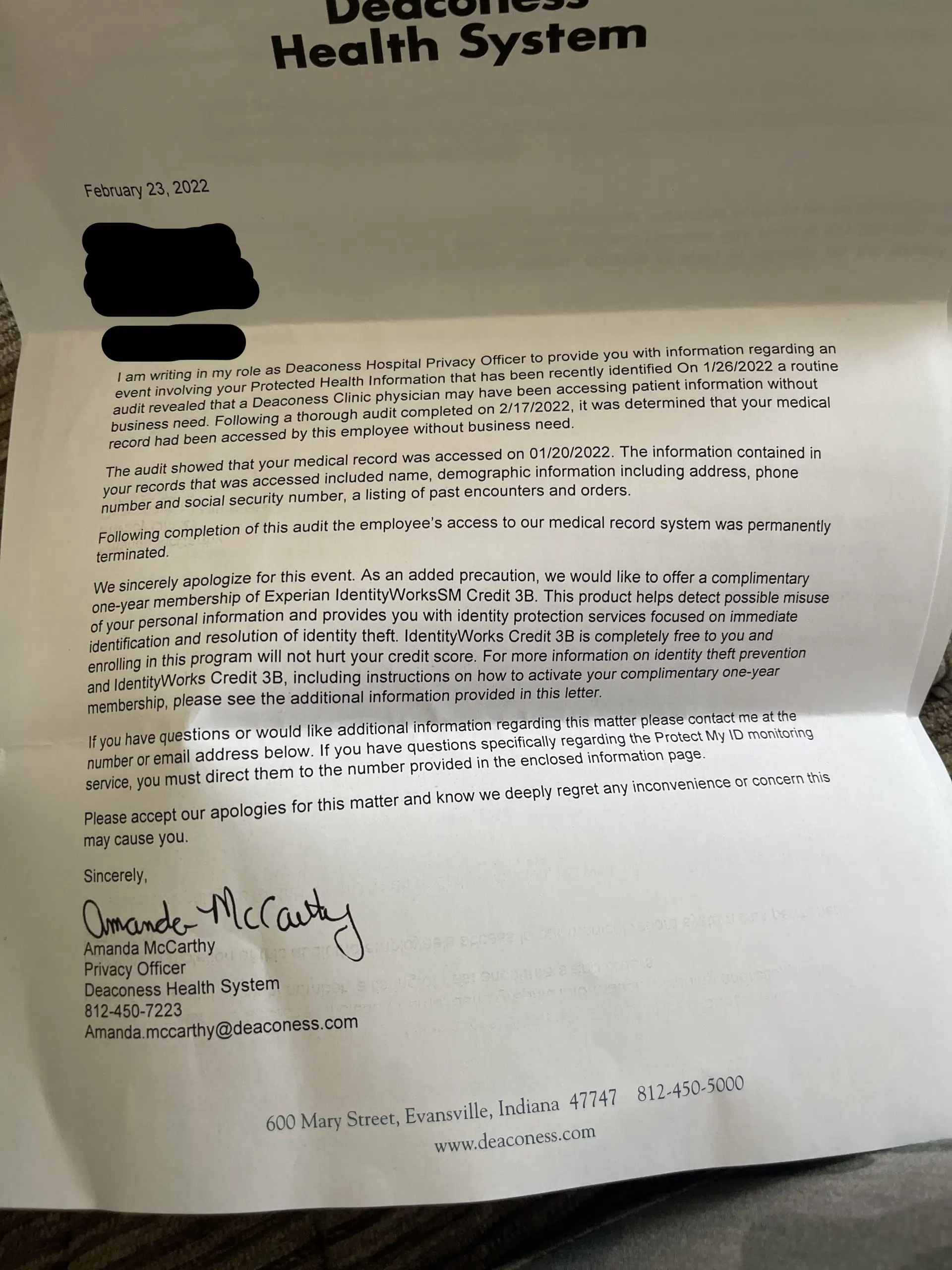 These woman were sent a letter from the hospital explaining that their protected health information was violated.