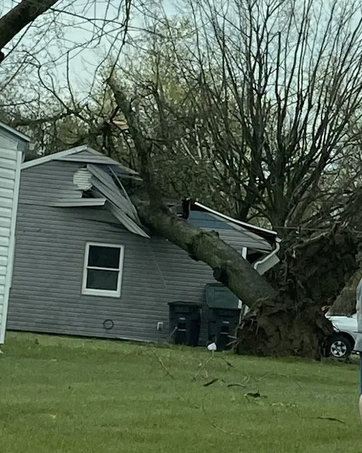 Storm damage on the north side of Evansville. Photo taken by Tiffanie Adams